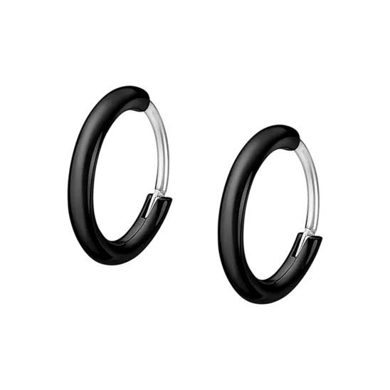 Pendientes Lotus Style. Estos pendientes están fabricados en acero inoxidable 316L, un material de alta calidad y resistente. Acabado brillo, en color negro, con 13,80 mm de diámetro y 1,17 gramos de peso.