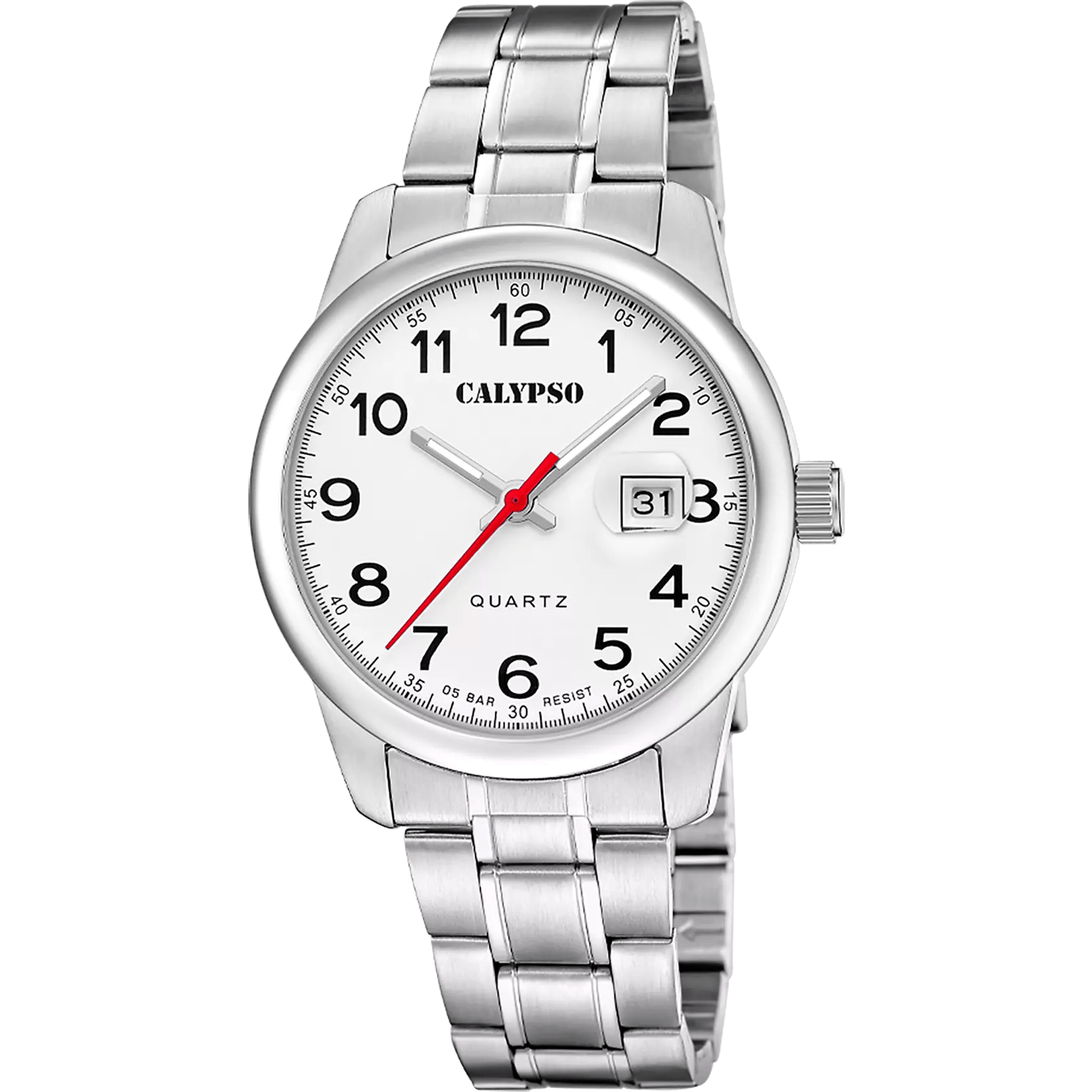 Este reloj Calypso de la colección Basic combina funcionalidad y estilo atemporal. Su caja redonda de acero inoxidable ofrece resistencia y durabilidad para el uso diario. Equipado con un movimiento de cuarzo japonés Miyota, garantiza una medición precisa del tiempo. Con cristal mineral y una estanqueidad de hasta 5 ATM, es el compañero ideal para tu rutina, con la fiabilidad que caracteriza a Calypso.