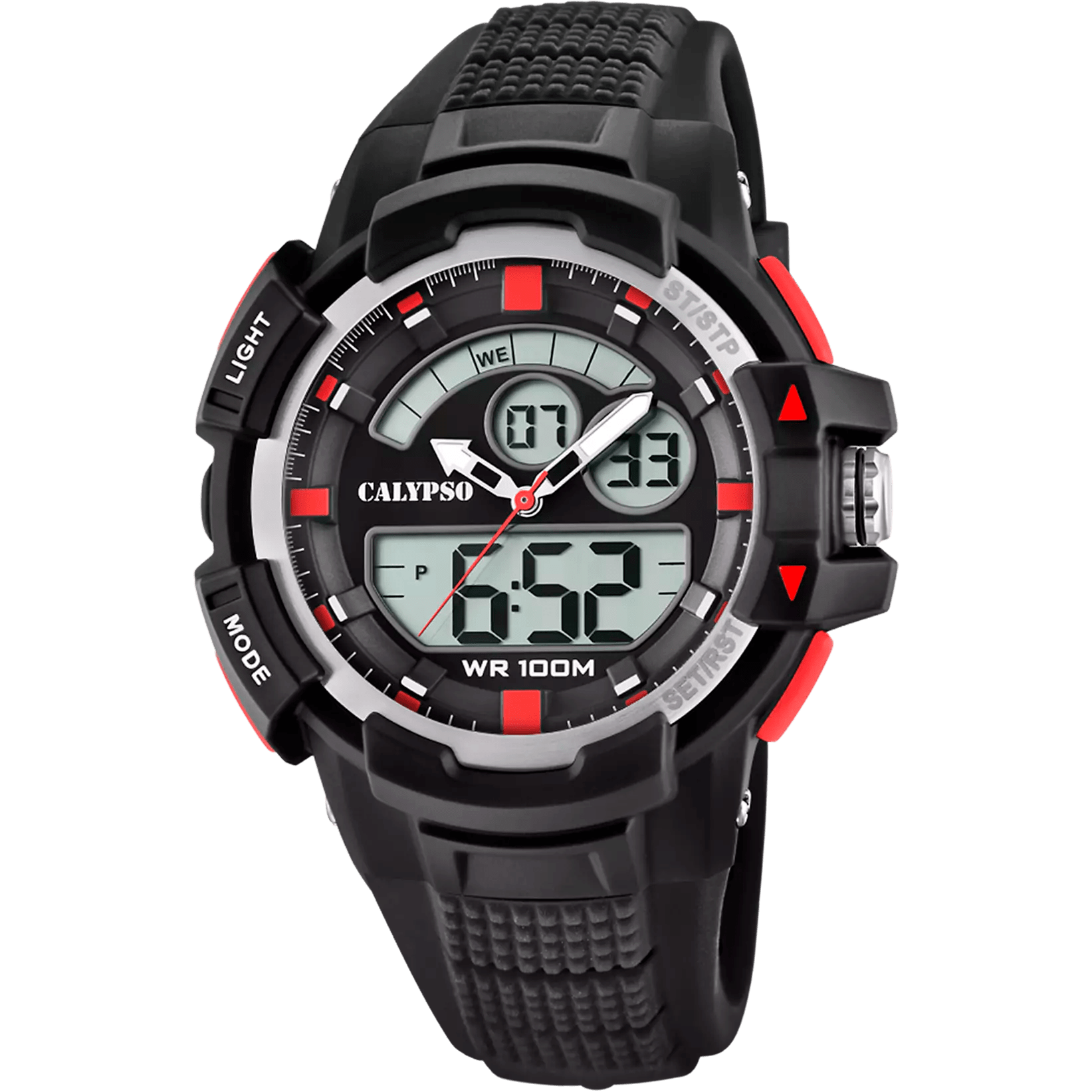 La colección de relojes digitales Calypso Flash Time destaca por su diseño juvenil, deportivo y resistente, pensada para quienes buscan funcionalidad y estilo a partes iguales. Estos modelos combinan colores vivos con una estética robusta, ideal para el día a día y actividades al aire libre.