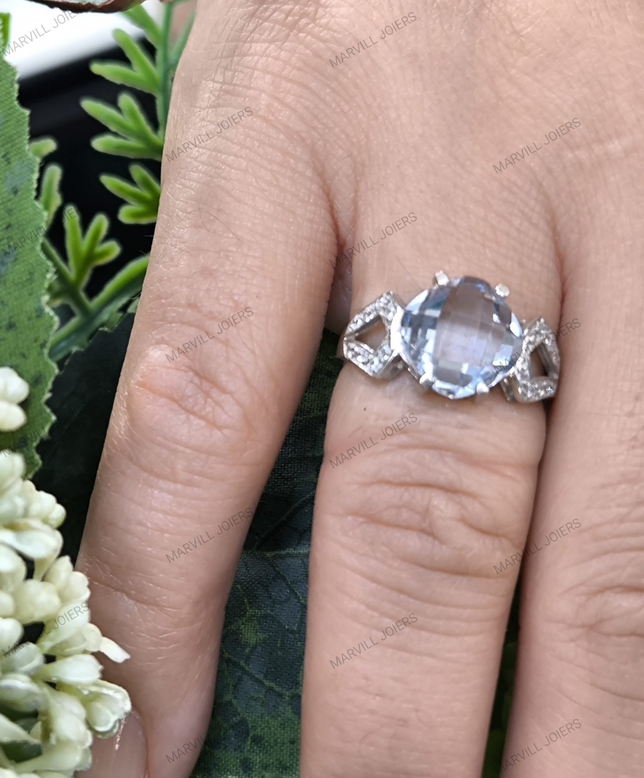 ANILLO ORO BLANCO PIEDRA AZUL